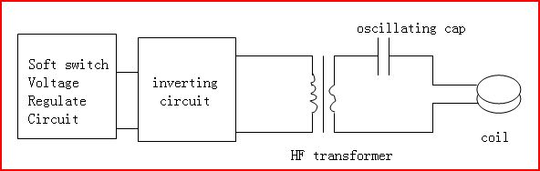 In these machines, series oscillating circuit is applied, through high frequency transformer, low voltage and high current power is output to go through the induction coil.