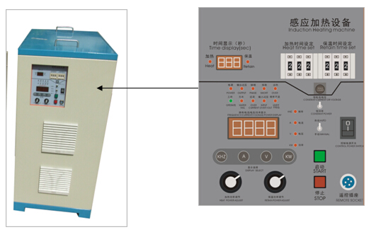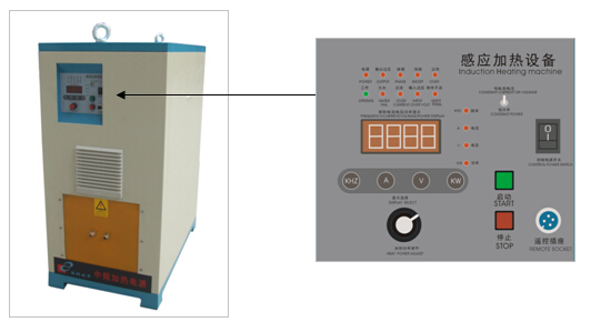 Since most of MF induction heating is long time or continuous working, normal front panel is installed on the machine, as indicated below pictures. With only start and stop button, and power adjust knob, it is easy to operate.