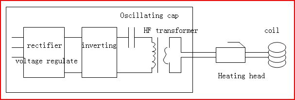 SPY machines adopt series oscillating circuit, inverting high frequency power is output through transformer and oscillating cap to the heating head, and then output to coil for heating.