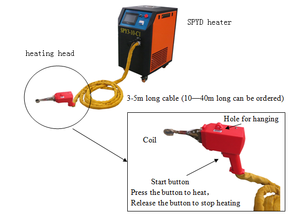 SPYD Customized mobile induction Heaters adopt parallel/series combination oscillating circuit, inverting high frequency power is output through transformer to the heating head (oscillating cap), and then output to coil for heating.