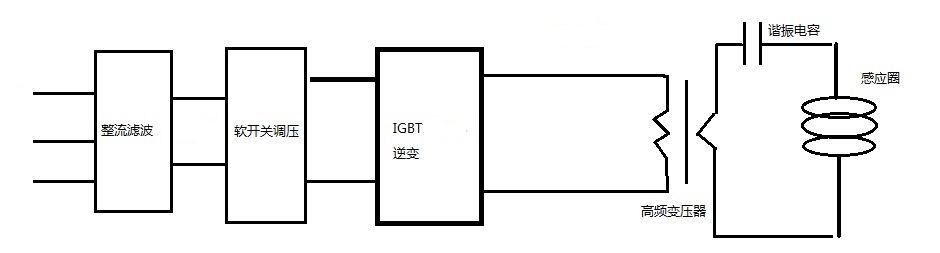 SP系列設(shè)備全部采用串聯(lián)諧振電路,諧振后通過高頻變壓器輸出低電壓、大電流的高頻電源;