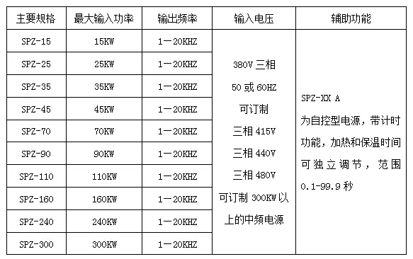 (1) SPZ系列中頻電源,結(jié)構(gòu)上采用并聯(lián)諧振,負(fù)載匹配簡單,設(shè)備效率高且利用率高。可以直接取代常規(guī)的可控硅中頻電源;
