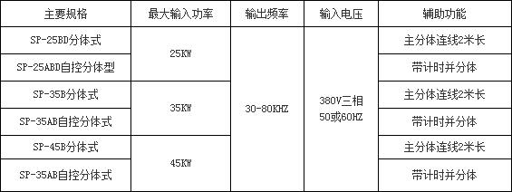 SP-25BD、SP-35B和SP-45B系列設(shè)備采用串聯(lián)諧振電路,諧振后通過高頻變壓器輸出低電壓、大電流的高頻電源;